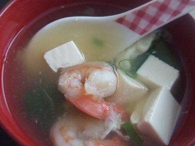 1.海老は殻をむきます。豆腐は適当に切ります。ねぎは千切りにします。