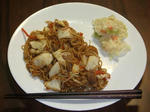 ⑤除けておいた具を入れ、混ぜて、ソースで味を付けます。