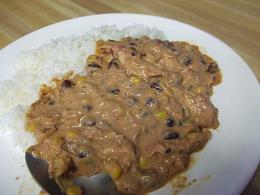 ①Slowcooker(あれば)か鍋に鶏胸肉(そのまま)、サルサ、コーン、ブラックビーンズを入れて適度に混ぜ、めちゃくちゃ弱火で4~5時間煮込みます。