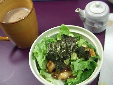 レタスはサラダを作る要領でちぎり、のりもはさみ又は手で細かくしておきます。