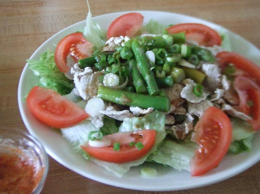 ④盛り付けして、ドレッシングを添えて出来上がり